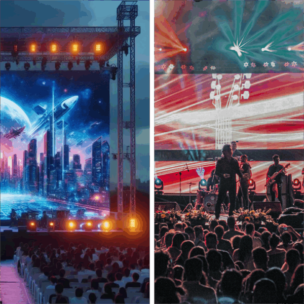 Para shows, conciertos y producciones audiovisuales, MAXLED ofrece pantallas con alto brillo, montaje rápido y formatos versátiles que se adaptan a cualquier puesta en escena.